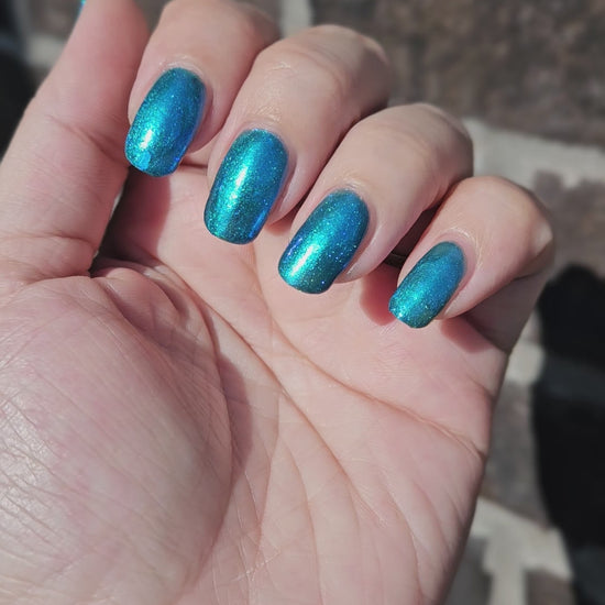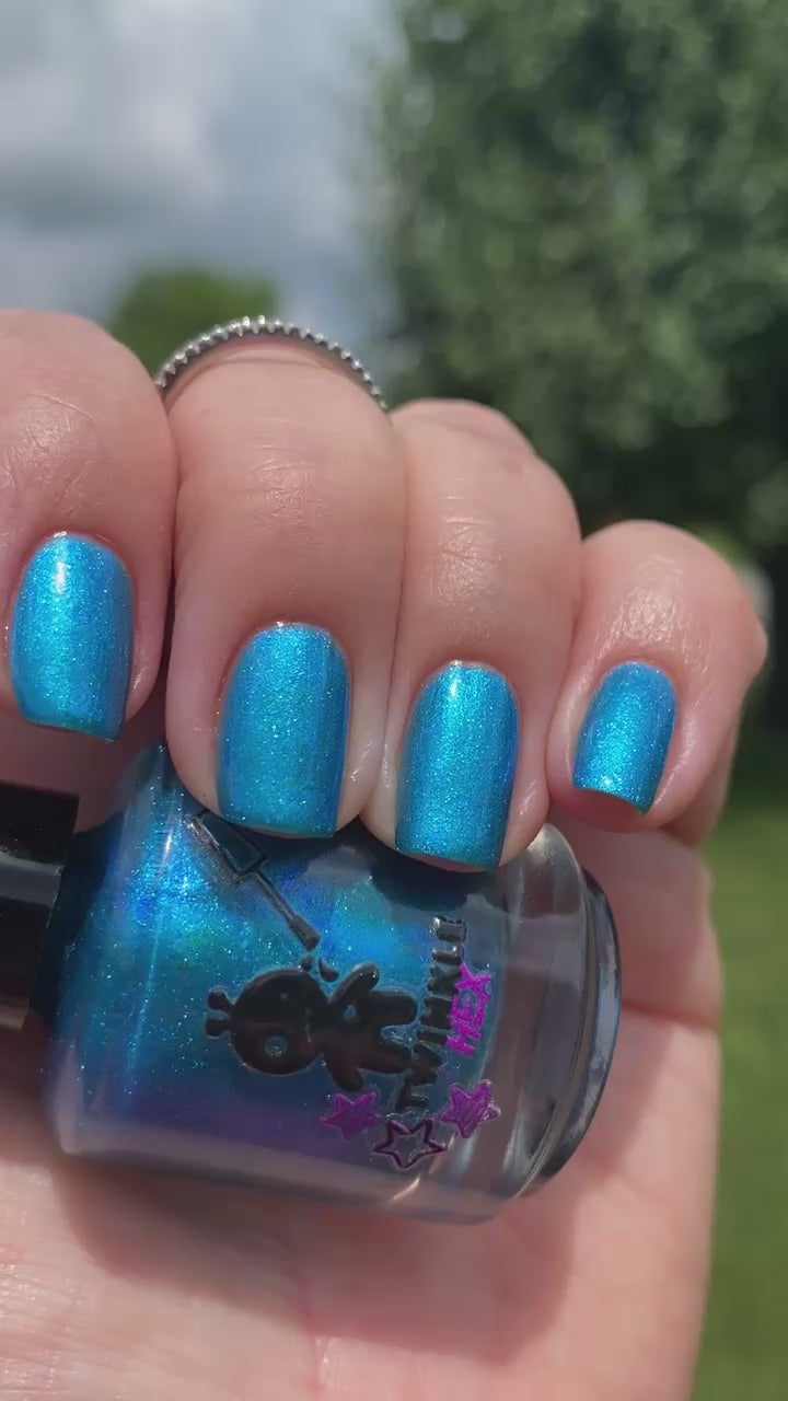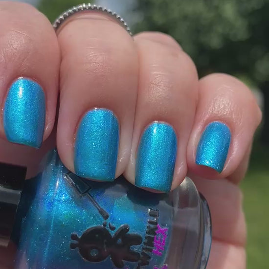 Bipolar Mermaid is a bold blue shimmer with a turquoise-green shift that catches the light from different angles.